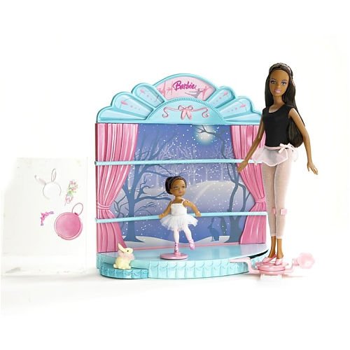 - Dance Teacher Barbie and her adorable ballet student both dance and twirl around the stage