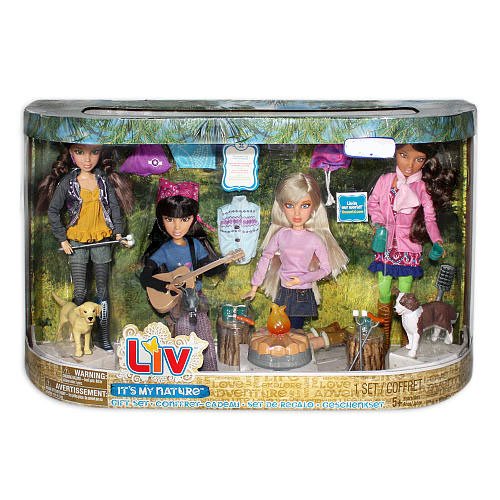 Liv Girls Its My Nature Gift Set 4 Dolls 2 Dogs 1 Bubby 1 Coffe Pot 4 Mugs 2 Skewers with Hotdog Marshemallow Guitar Campfire Reviews
