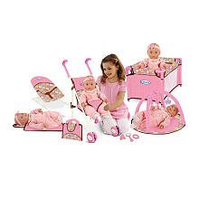 Graco Room Full of Fun has everything for baby doll and more! Graco's comprehensive doll set offers hours of fun and role play for every little girl! Included Umbrella Stroller, Pack N Play Lite, Bouncer, Playgym, Diaper Bag and 3 pcs accessories. Doll not included. Suitable for dolls 12" to 18". Ages 3 and up.