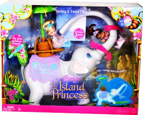 Mattel Year 2007 Barbie as "The Island Princess" Series Playset - SWING & TWIRL TIKA the Elephant with Umbrella Chair, 2 Princess Dolls, "Flowers" and Hairbrush Reviews